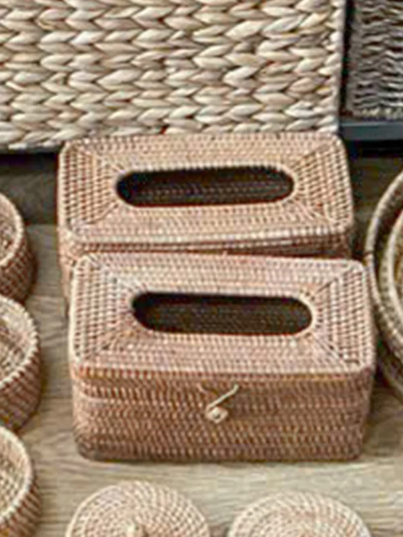 Handwoven Rattan Tissue Box with Lid